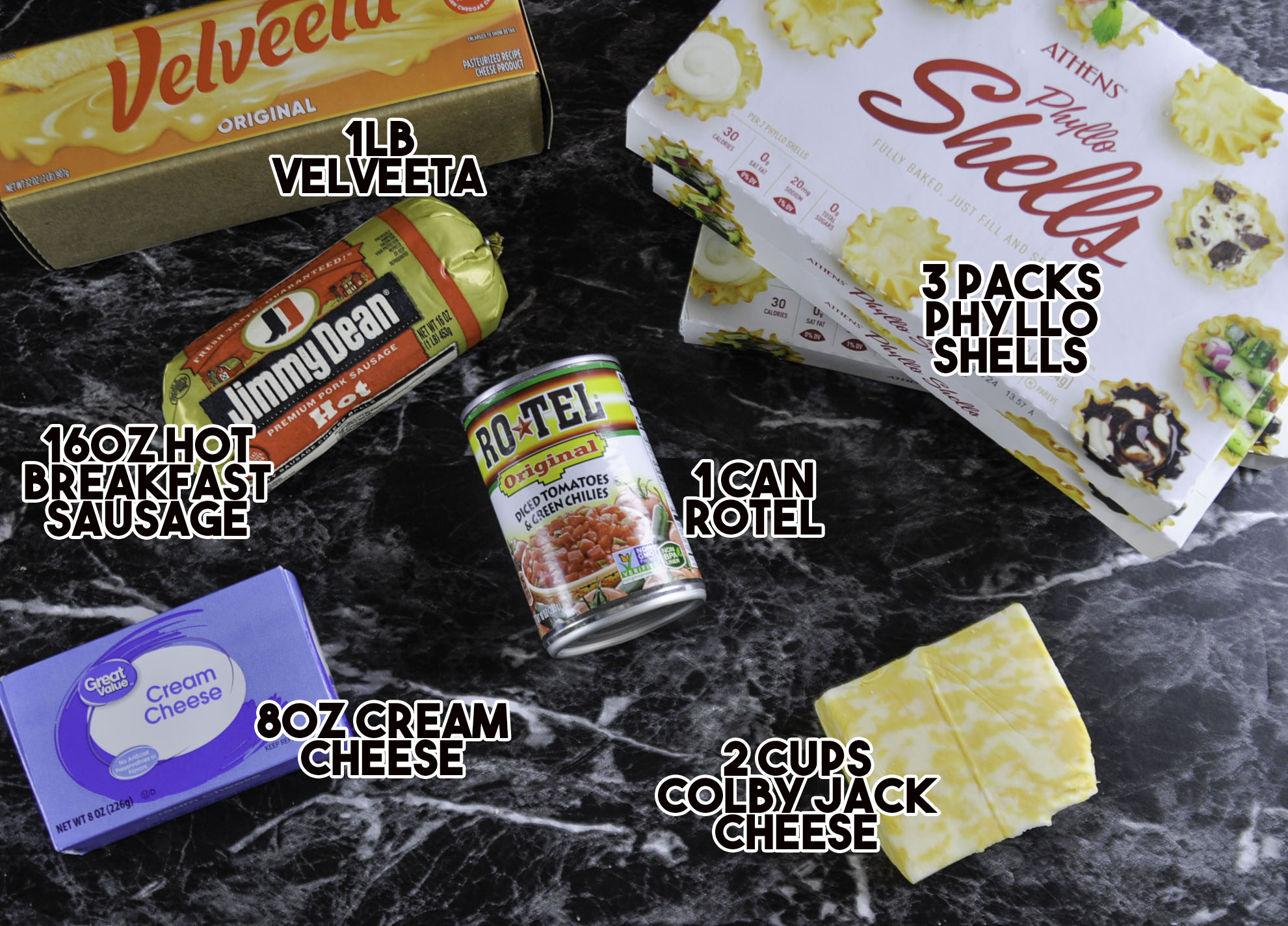 The recipe is a little different than the one I use for the dip, on purpose. Just adding Rotel dip would result in soggy, mushy phyllo cups - nobody wants that! After a little trial and error, I was able to make the adjustments to the dip that prevent soggy phyllo cups but still capture the rich, spicy flavor of a Rotel dip.