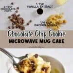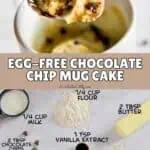 Quick and easy chocolate chip cookie mug cake made in the microwave - no egg required! It's the perfect single-serve dessert that's ready in just a minute.