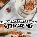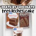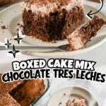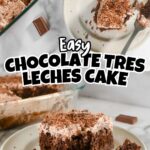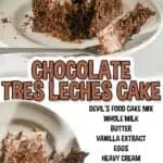 Make a Chocolate Tres Leches Cake with boxed cake mix - it's easy and so delicious! Rich chocolate cake soaked in three milks, then topped with chocolate whipped cream and chocolate curls.