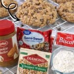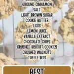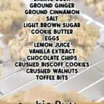 - Fold in chocolate chips, crushed Biscoff cookies, walnuts, and toffee bits.