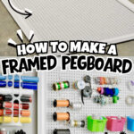See a tutorial for how to hang a DIY large framed craft room pegboard. Get ideas for how to organize & display your craft supplies with accessories from Ikea & Dollar Tree.
