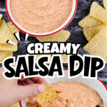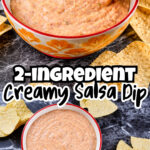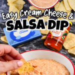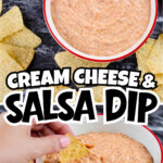 This recipe for Cream Cheese and Salsa Dip only has 2 ingredients and can be made in under 5 minutes! An easy appetizer that's perfect for a quick snack.