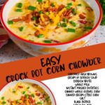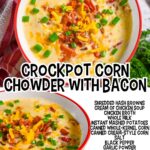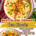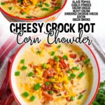 This easy Slow Cooker Corn Chowder is a rich and easy Crock Pot soup. The flavors of hash browns, corn, bacon, and cheddar come together for a comforting (but simple) weeknight dinner.