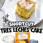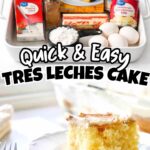 This easy Tres Leches Cake with Cake Mix recipe uses boxed cake mix and a sweet three milk mixture, topped with rich whipped cream & cinnamon for the best shortcut dessert you'll find!