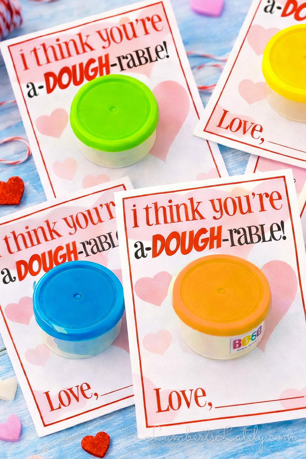 These Play Doh Valentine printables are non-candy treats that work really well for school Valentine exchanges.