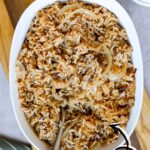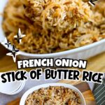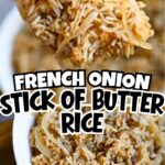 This French onion rice is an ultra-easy, dump-and-bake side dish made with pantry staples and fresh onions. No sautéing, no precooking - just buttery, savory rice that bakes up fluffy every time.