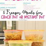 This set of 5 Instant Pot (pressure cooker) or Crock Pot (slow cooker) freezer meals is so easy to make ahead for busy weeknight dinners! Includes kid friendly and healthy options.