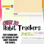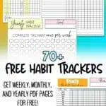 Check out this set of 72 free daily, weekly, and monthly habit tracker printables. These editable pdf format files have a fun, colorful design and help you track habits with ease.