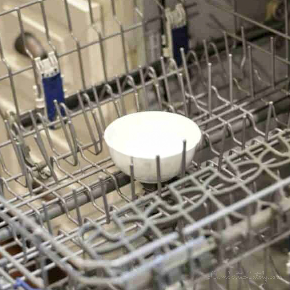 - Place a dishwasher-safe bowl filled with white vinegar on the top rack. Run a full high-temperature wash cycle.