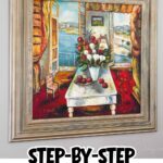See how to make a DIY picture frame with baseboard molding - perfect for canvas art. Follow these simple steps to create an ornate, gold antiqued frame at home.