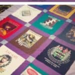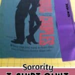 Get a step by step tutorial for how to make a t-shirt quilt out of old sorority or high school shirts. The free pdf pattern, layout, and assembly instructions make it so easy, even for beginners!