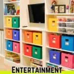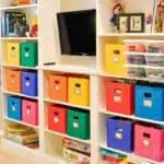 One of my favorite organizational tips is to go vertical with your organization. You aren't limited to just floor space when trying to corral toys, books, and art supplies.