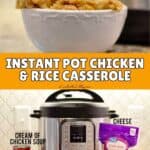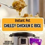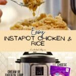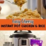 This Instant Pot Cheesy Chicken and Rice uses ingredients like cream of chicken soup and cheese to make a simple, crowd-pleasing weeknight dinner that even kids love!