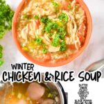 This easy recipe for Instant Pot Chicken & Rice Soup is perfect for a weeknight dinner! From fridge to table in under an hour & loaded with veggies.