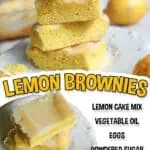 - Make these in any flavor! Simply change the flavor of the cake mix to change up your brownies. These are great as strawberry brownies, banana brownies, or even red velvet brownies.