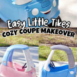 See how you do a DIY Little Tikes Cozy Coupe Makeover (for boys or girls) with simple cleaning, stickers, and spray paint! No priming or sanding required.