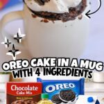 Oreo Mug Cake is an easy dessert that's ready in just one minute in a microwave! With just 4 simple ingredients, get that famous rich chocolate flavor in a warm, gooey cake.