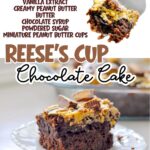 Reese's Peanut Butter Cup Cake is a chocolate cake filled with peanut butter cups and a rich filling of homemade peanut butter frosting. This easy, irresistible treat is perfect for a party or potluck!