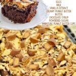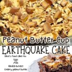 - In a large bowl, mix together cake mix, eggs, 1 cup milk, vanilla extract, 1 cup of peanut butter, and 1 stick of butter. Spread mixture in a greased 9x13" baking dish.