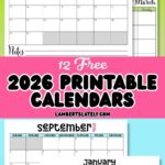 Organize your year in style with these free printable calendars for 2026! Get both undated and dated, portrait and landscape calendars for all 12 months (January-December) with free pdf printables.
