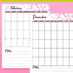 Each calendar is on a single page and has a custom notes section to jot down random thoughts or to-dos.