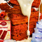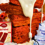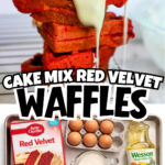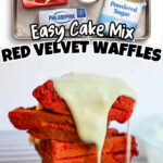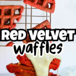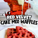 These easy red velvet waffles are covered in a cream cheese glaze - perfect for a breakfast sweet treat! Made with cake mix and 5 other simple ingredients.