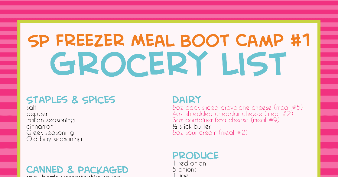 After you make the big grocery run outlined in that list, you'll need to make a very small trip to the store for the filler/perishable/side items you'll need each week. The meals plans and shopping lists for those weeks are included in that pack in the printable collection as well (they're the ingredients highlighted in pink on the list). I bought my first week worth of small trip items when I did the big grocery trip for the freezer meals.