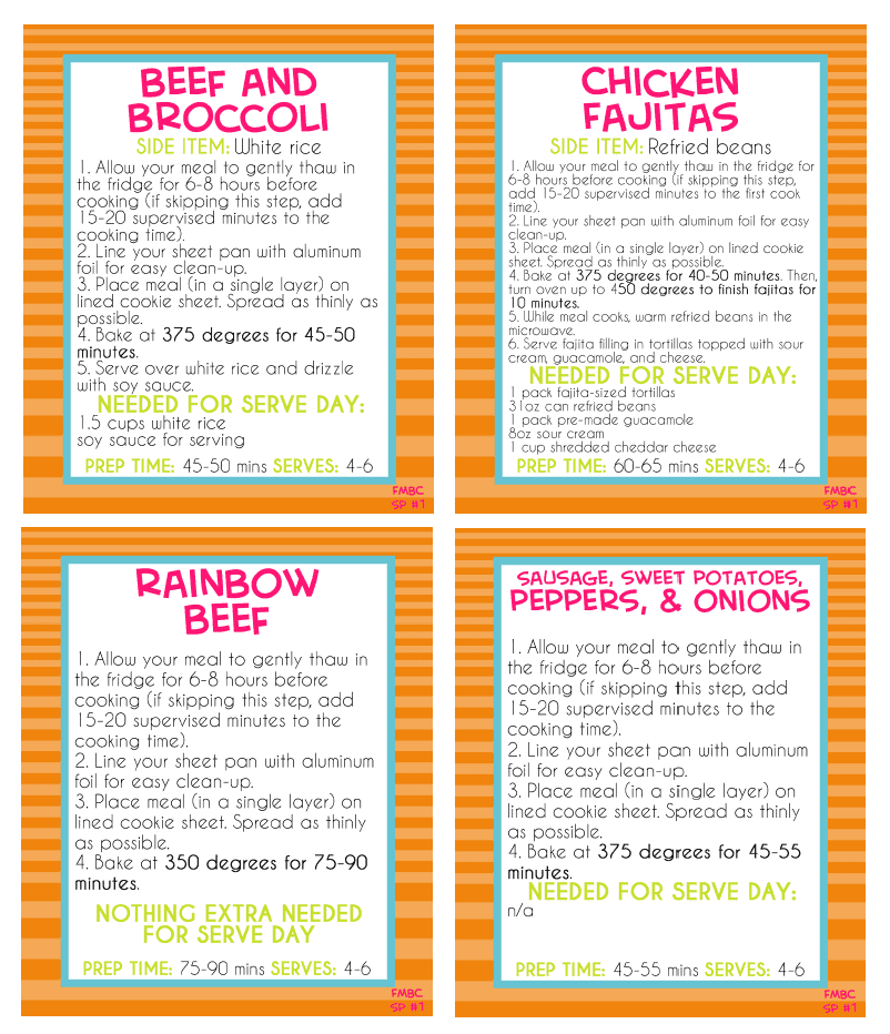 - Instructions - The full cook times, items needed for serve day, etc. are located on the label of each recipe. If you'd like a pack of printable grocery lists, labels, and recipe cards, as well as all of the instructions for your sheet pan meal prep session in one document, sign up here to get access info sent to your inbox! It's free to join.