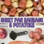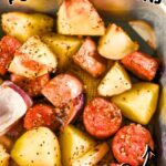 Sheet Pan Sausage, Potatoes, and Onions is an easy and flavorful dinner idea that you can make in under an hour! With just 5 simple ingredients, this sheet pan meal is super customizable.