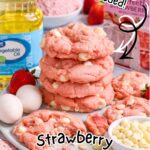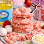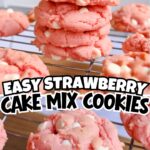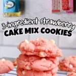 Soft, chewy Strawberry Cake Mix Cookies made with just 3 simple ingredients (and optional white chocolate chips). Quick to mix, quick to bake, and they stay pink and pretty!