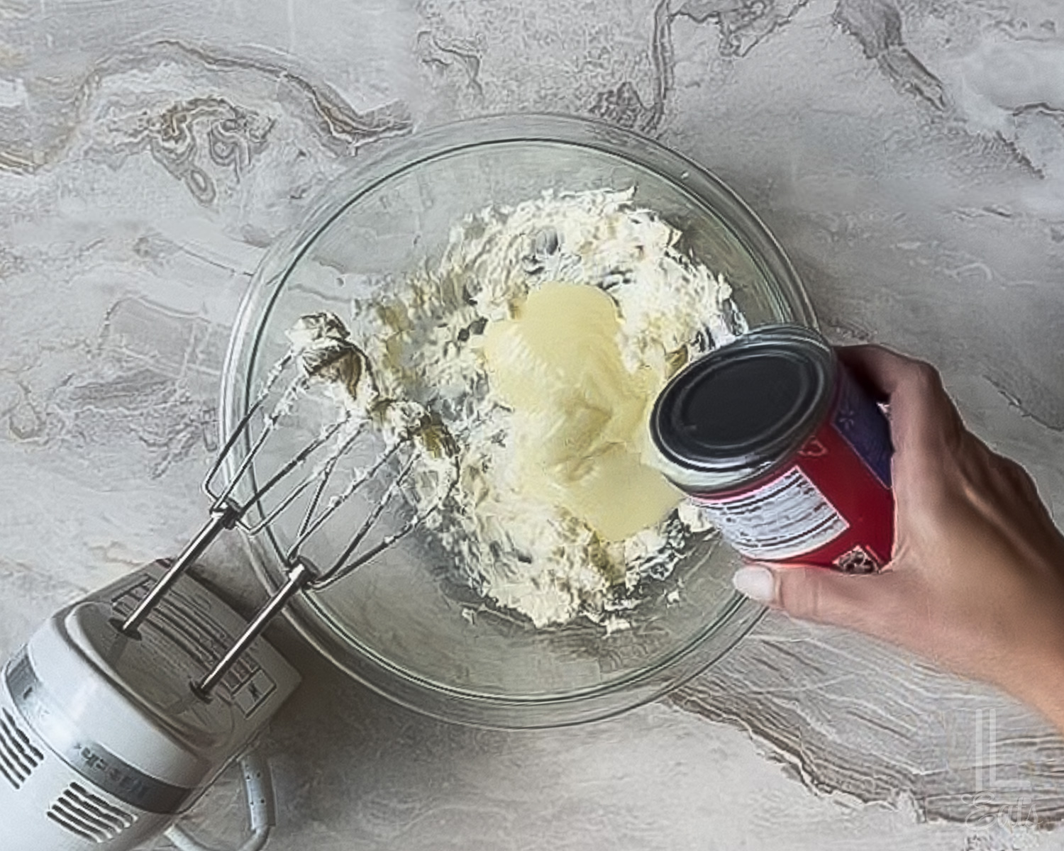- Mix in the sweetened condensed milk - Add and mix until fully combined and creamy.