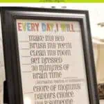 The easiest way to use chore charts over and over is to laminate, use a sheet protector, or use an inexpensive picture frame (like the one pictured above, from Dollar Tree). Once in the protector, write on the chore chart a wet-erase or dry-erase marker to mark off the tasks on the daily checklist.