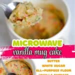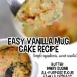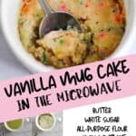 This easy Vanilla Mug Cake is the perfect way to satisfy a sweet tooth. A single serve cake that's made in the microwave with 4 ingredients (and no egg)...ready in about 2 minutes!